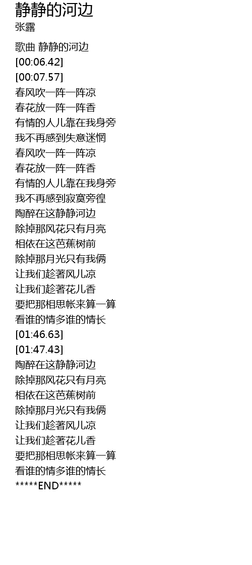 | [00:47.10] | chun feng chui yi zhen yi zhen liang |