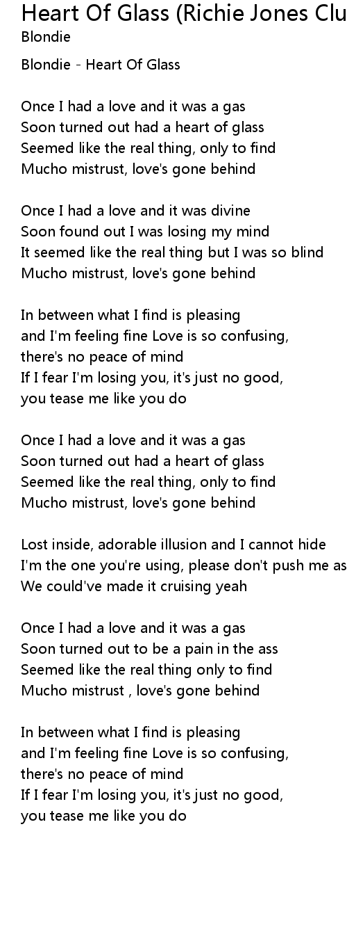 Heart Of Glass (Richie Jones Club Mix) Lyrics