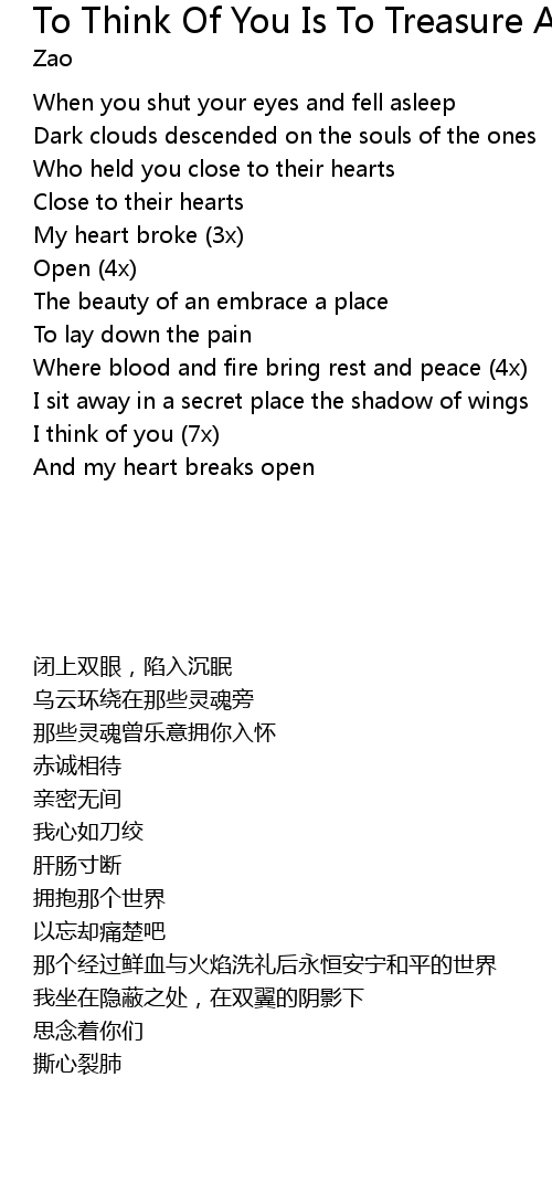 | Song | To Think Of You Is To Treasure An Absent Memory |