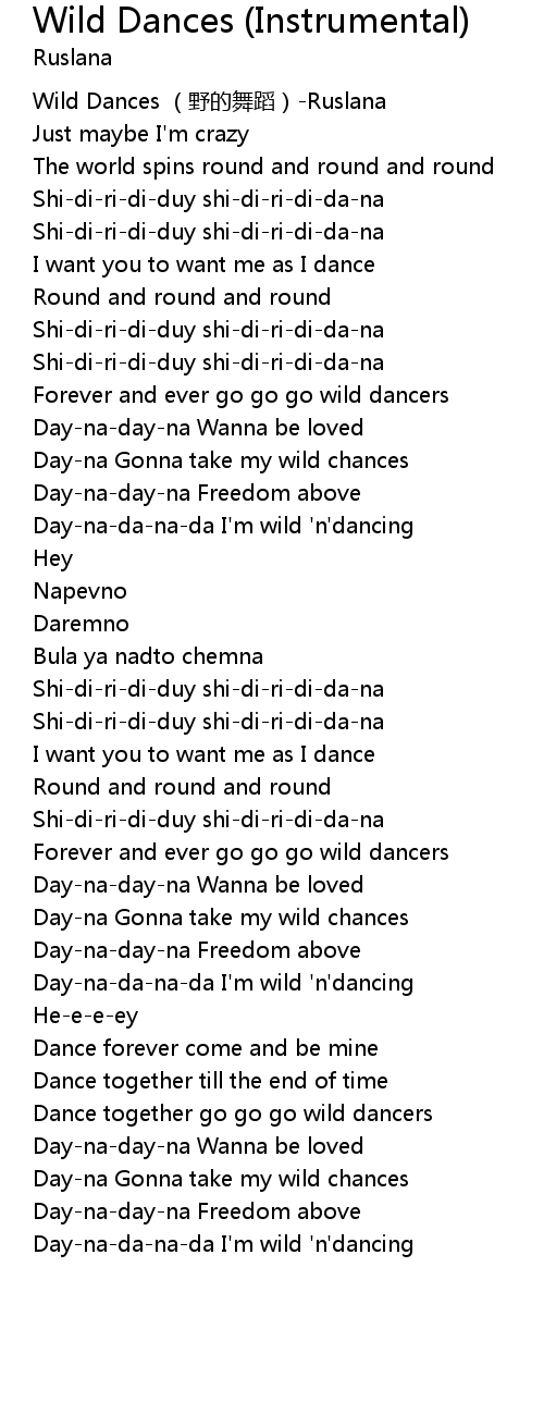 | [00:00.00] | Wild Dances yě de wǔ dǎo Ruslana |