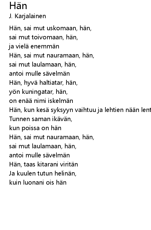 | H n, kun kes syksyyn vaihtuu ja lehtien n n lent v n | |
