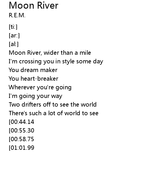 | [00:03.89] | Moon River, wider than a mile |