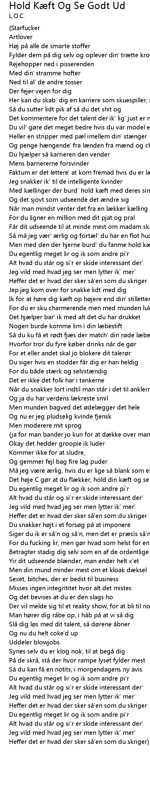 | Song | Hold Kæft Og Se Godt Ud |