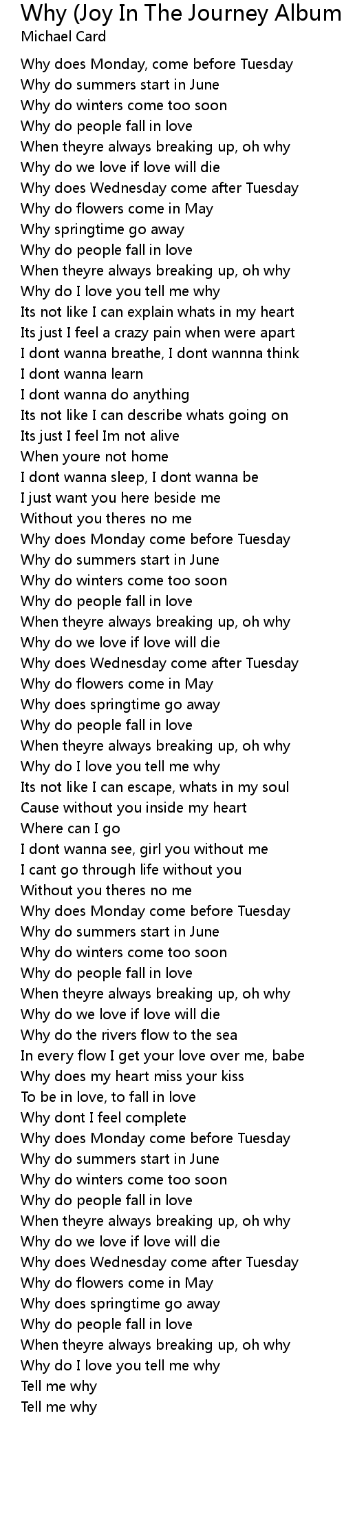 Tell me why |
