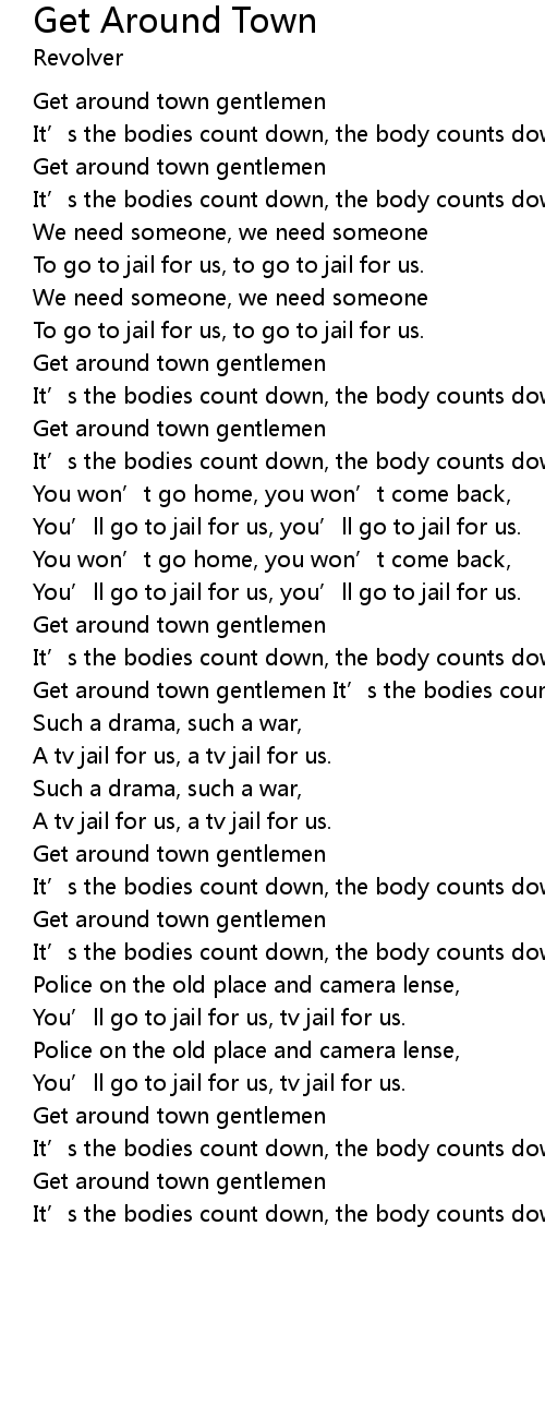 | Get around town gentlemen It’s the bodies count down, the body counts down. | |