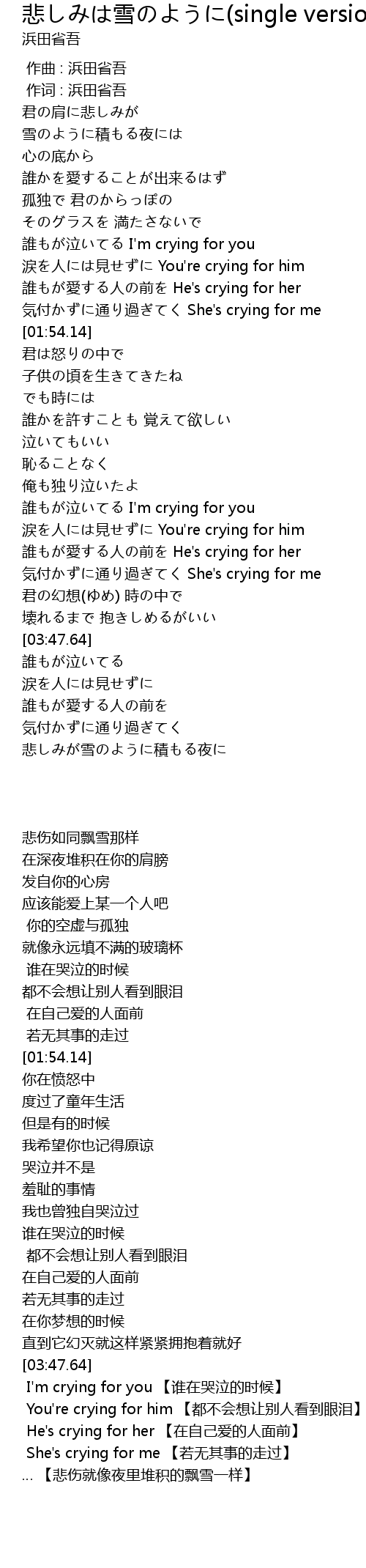 | [01:30.52] | lèi rén jiàn You' re crying for him |