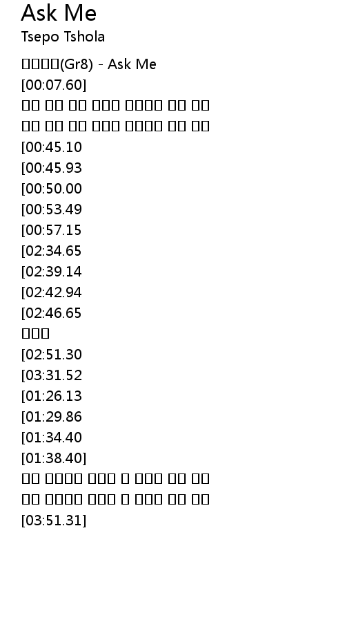 | [00:01.41] | 그레이트(Gr8) - Ask Me |