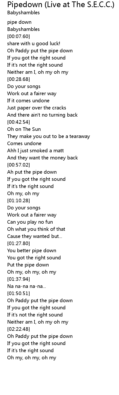 Pipedown (Live at The S.E.C.C.) Lyrics