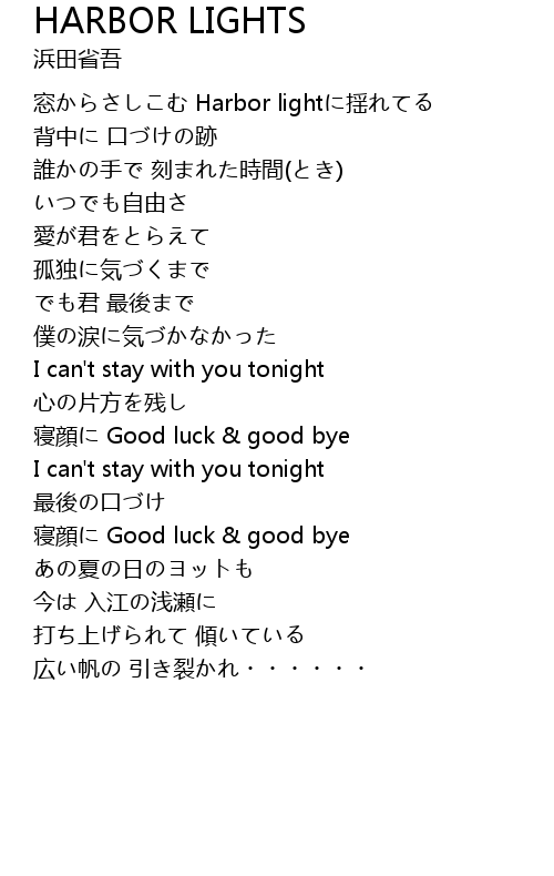 | Song | HARBOR LIGHTS |