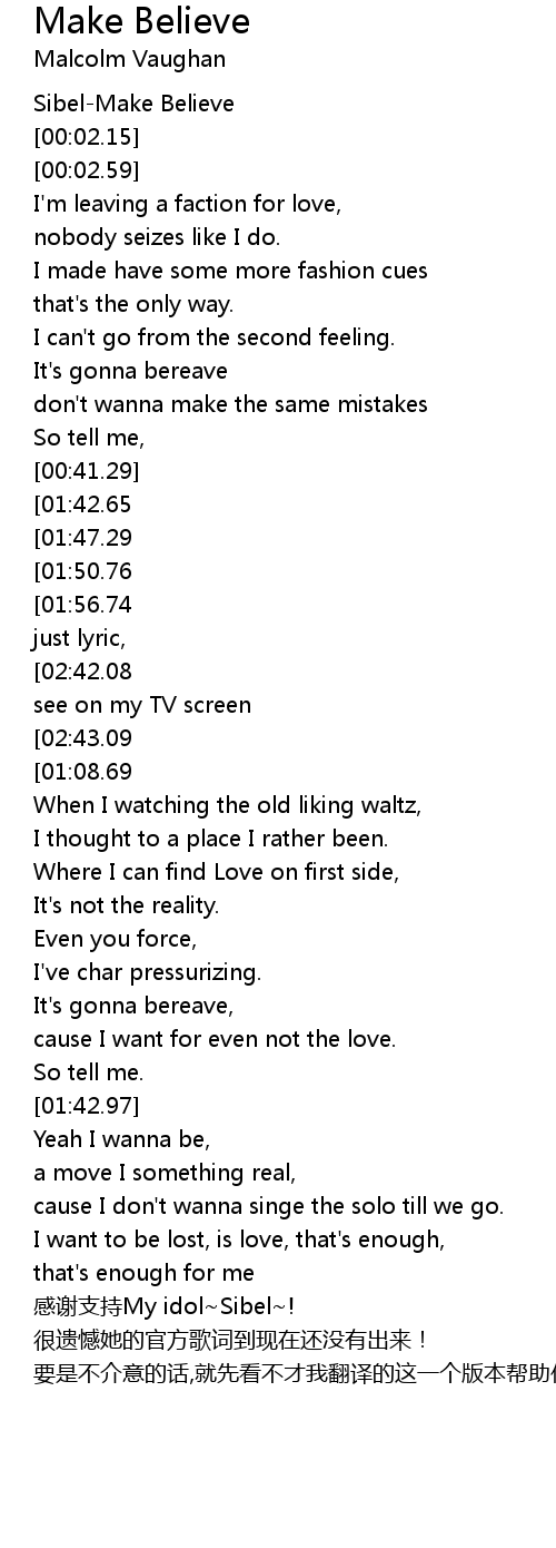 | [02:58.62][01:50.76][00:48.50] | All I see is make believe. |
