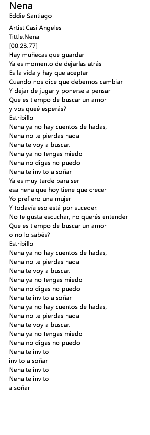 | [02:59.48] | Nena ya no hay cuentos de hadas, |