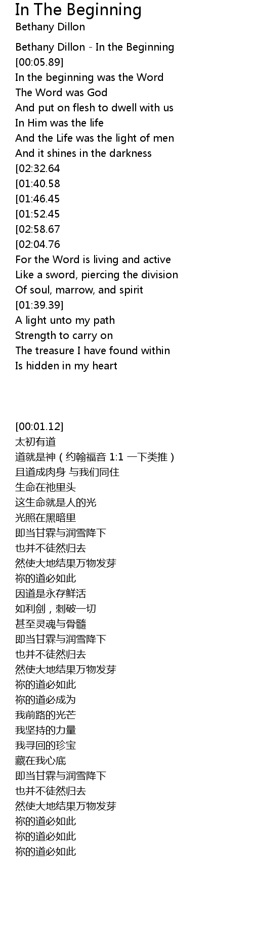 [00:01.12] Bethany Dillon - In the Beginning