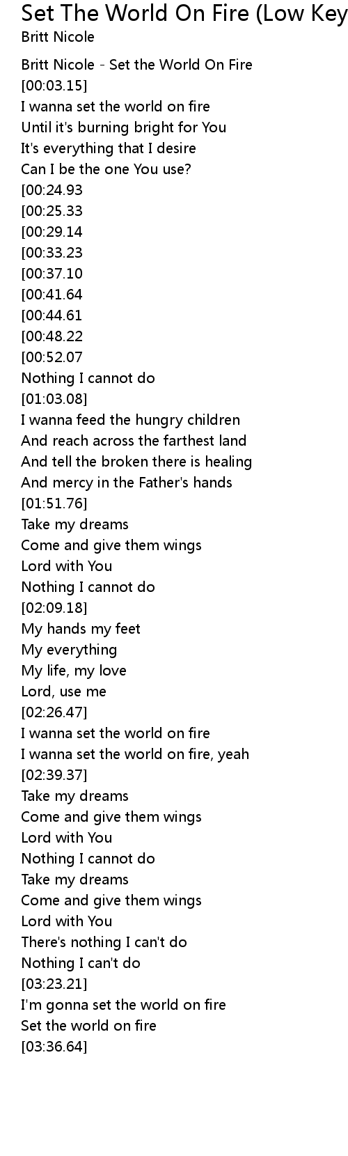 [00:01.12] Britt Nicole - Set the World On Fire