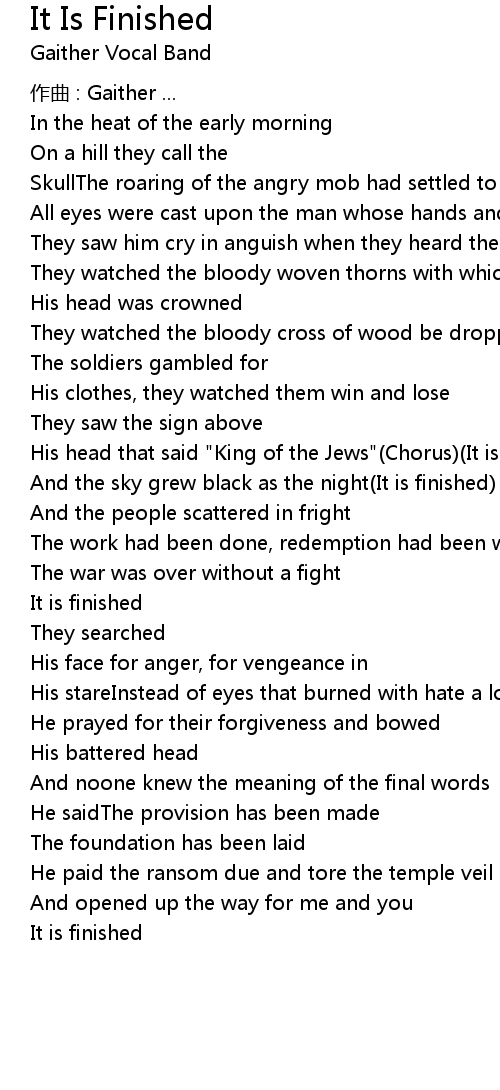 | His head that said "King of the Jews"(Chorus)(It is finished) | |