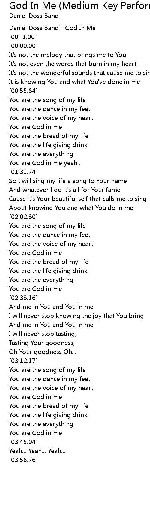 God In Me (Medium Key Performance Track Without Background Vocals) Lyrics