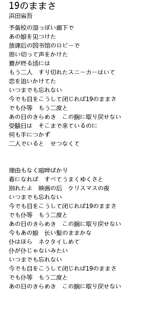 今でも目をこうして闭じれば19のままさ |