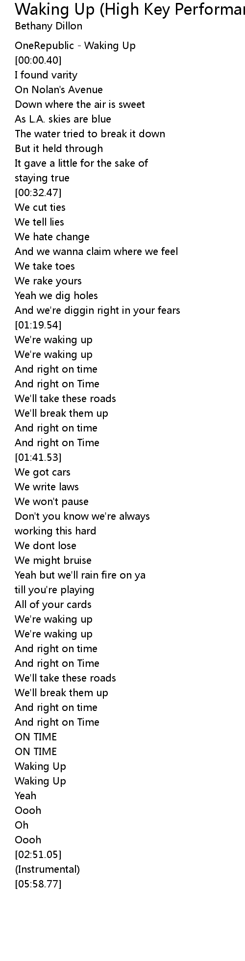 Waking Up (High Key Performance Track Without Background Vocals) Lyrics