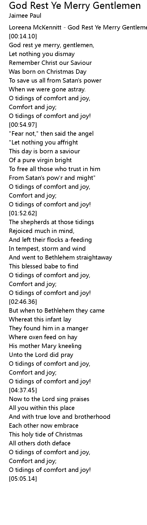 [00:00.01] Loreena McKennitt - God Rest Ye Merry Gentlemen