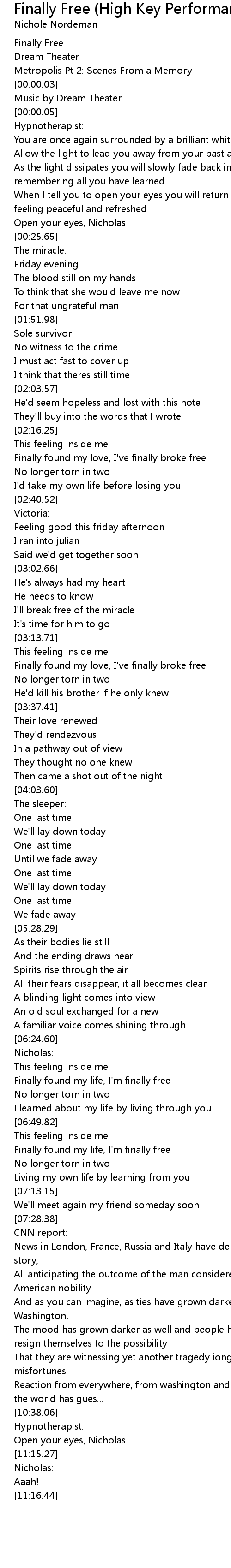 Finally Free (High Key Performance Track Without Background Vocals) Lyrics