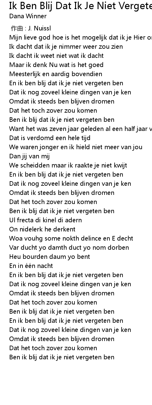| Song | Ik Ben Blij Dat Ik Je Niet Vergeten Ben |