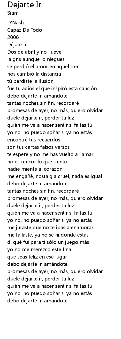 | [00:14.60] | Déjate Ir |