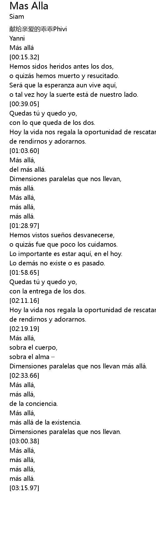 | [00:13.15] | Más allá |
