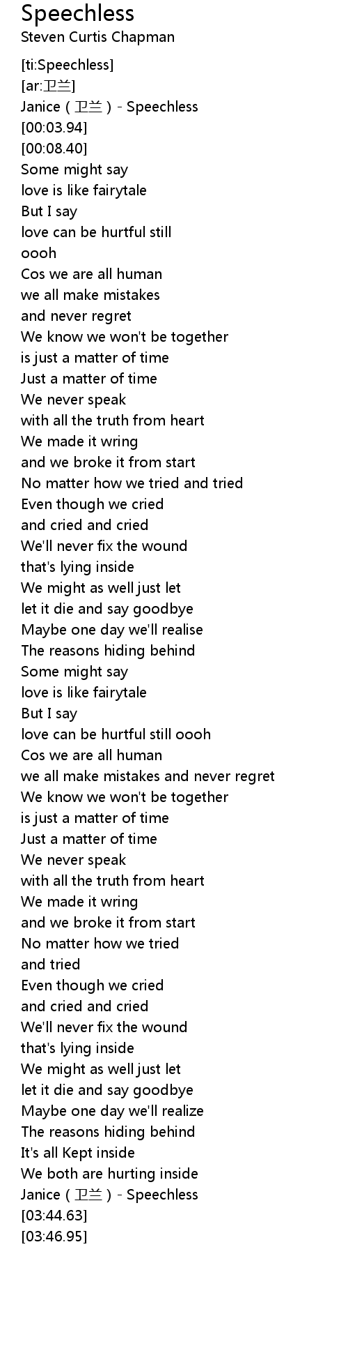 | [03:42.75] | Janice(卫兰)- Speechless |