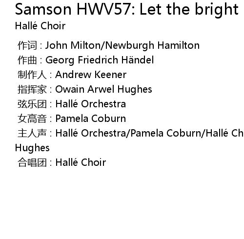 | [00:00.000] | 主人声 : Hallé Orchestra/Pamela Coburn/Hallé Choir/Owain Arwel Hughes |
