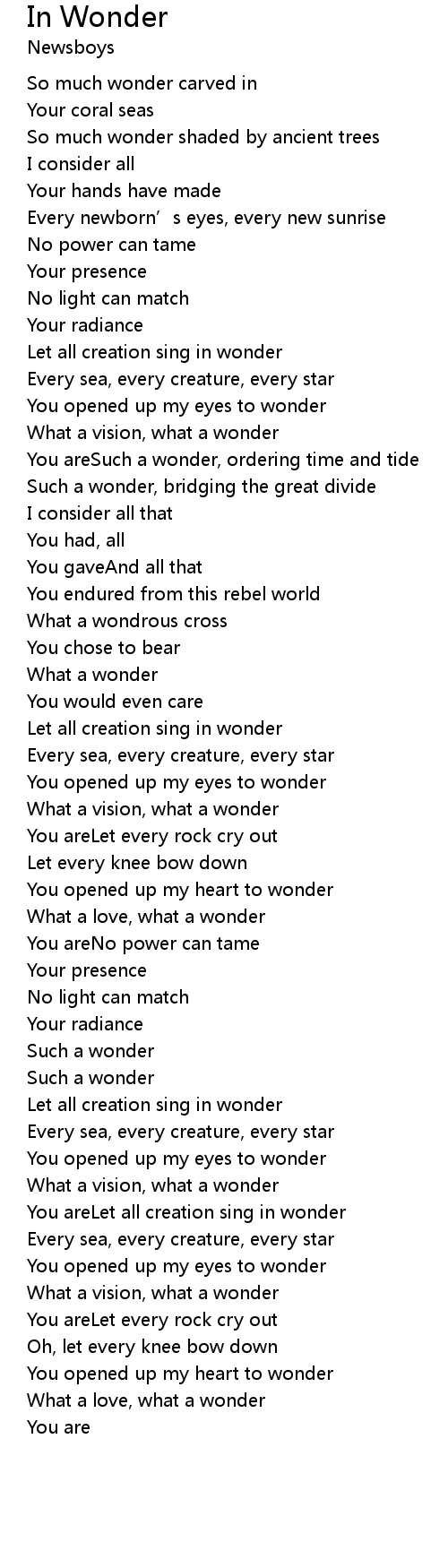 | You areLet all creation sing in wonder | |
