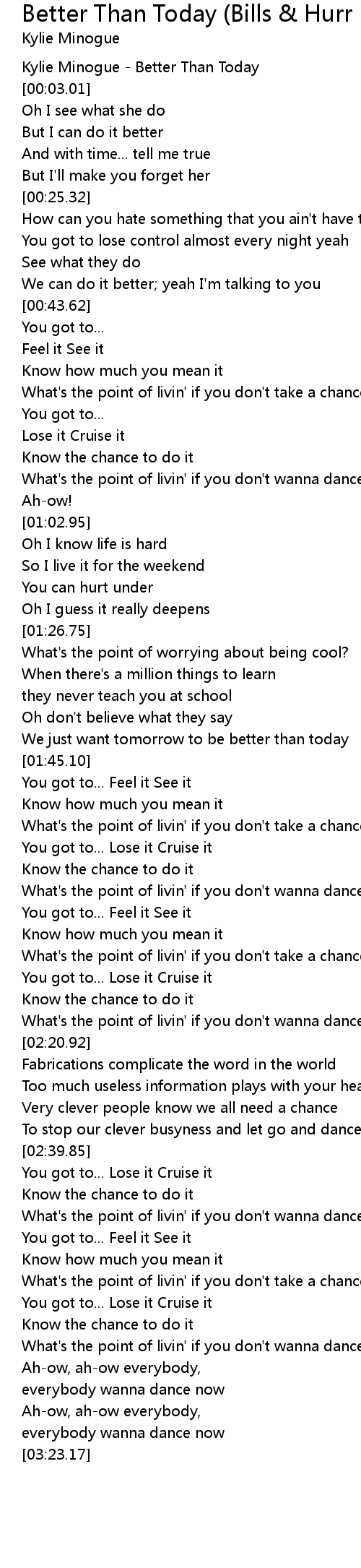 [00:01.12] Kylie Minogue - Better Than Today