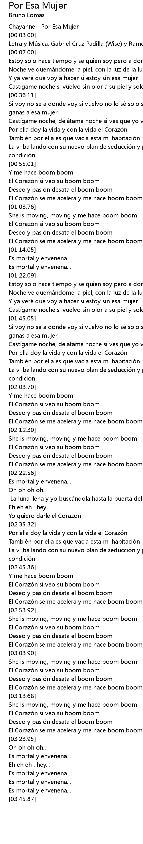 | [03:06.51] | El Corazo n si veo su boom boom |