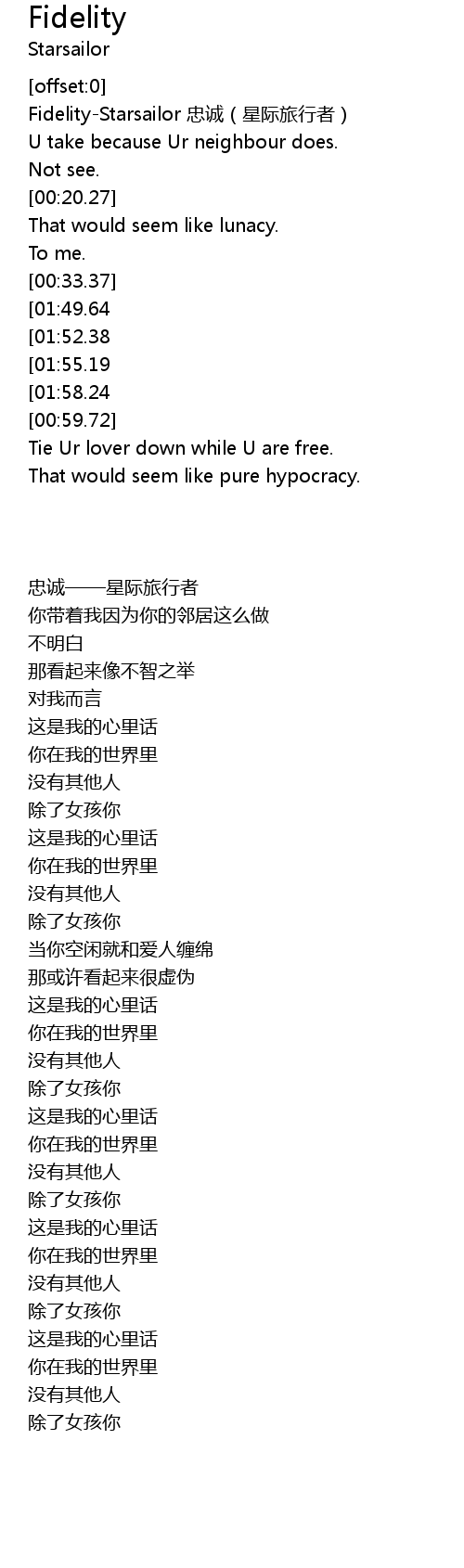 | [00:05.00] | Fidelity-Starsailor 忠诚(星际旅行者) |