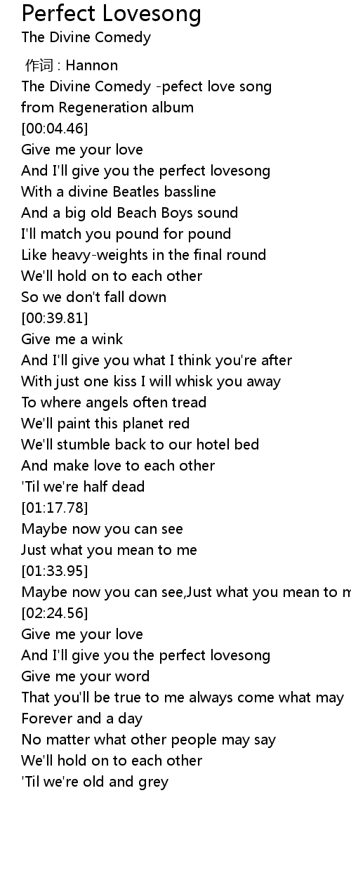 | [02:28.86] | And I' ll give you the perfect lovesong |