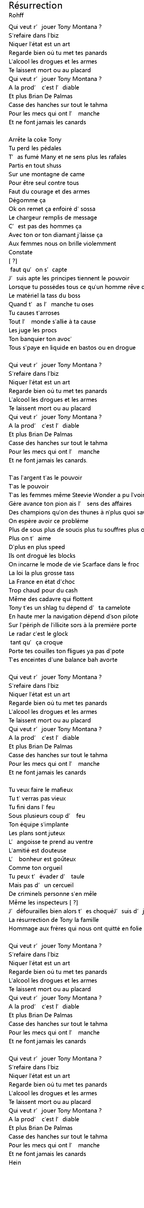 | Tony t' es un shlag tu dé pend d' ta camelote | |