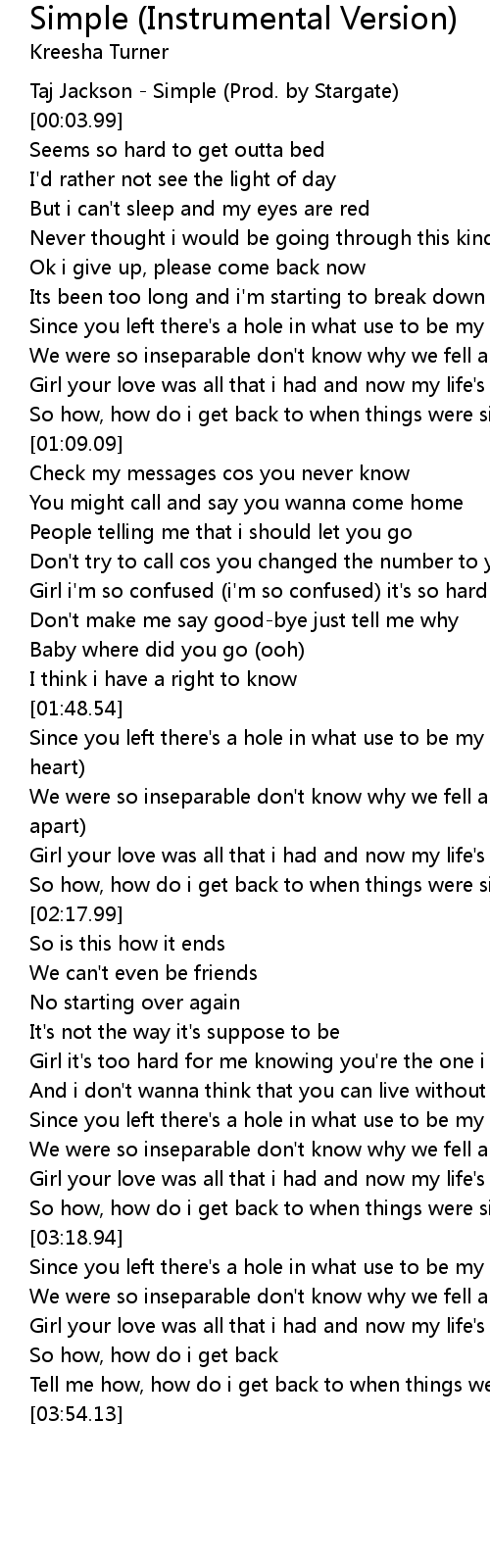 Tell me how, how do i get back to when things were simple |