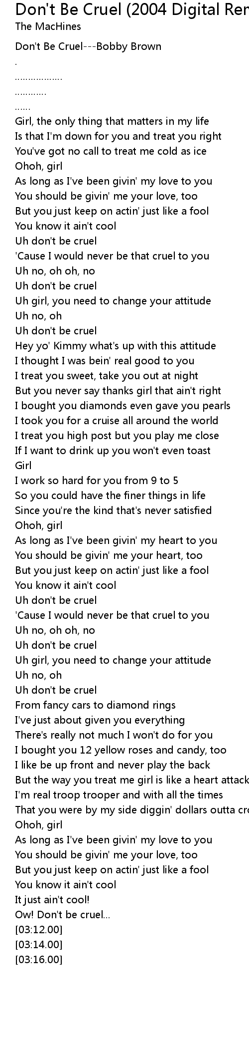 | [00:57.11] | Uh don' t be cruel |