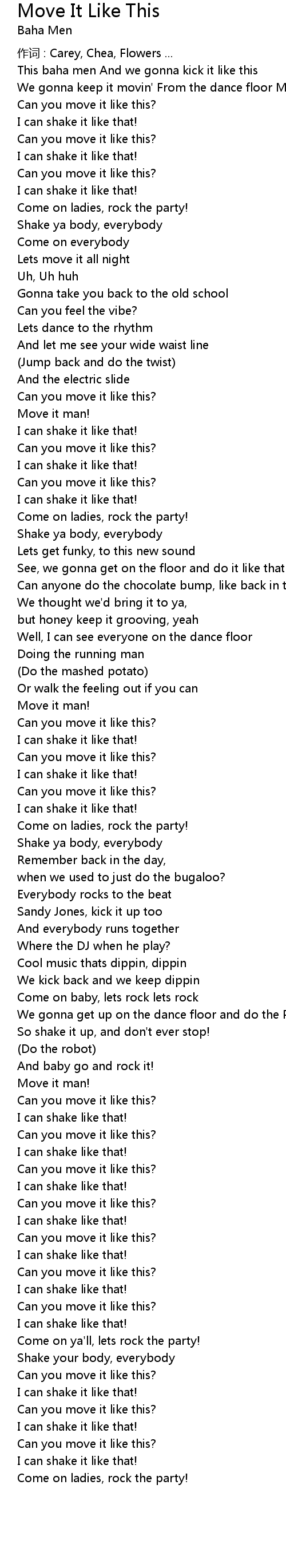 | We gonna keep it movin' From the dance floor Move It Man! | |