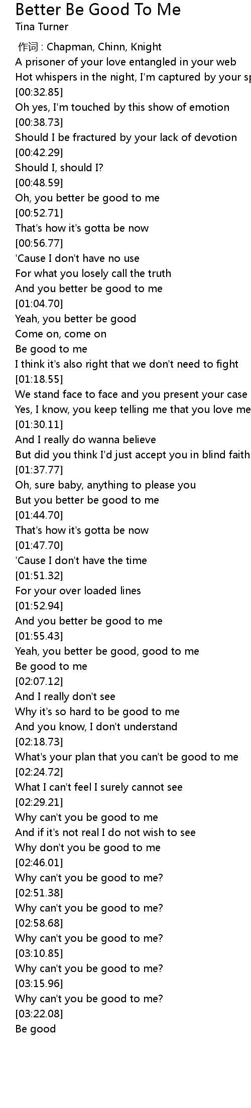 | [02:19.72] | What' s your plan that you can' t be good to me |