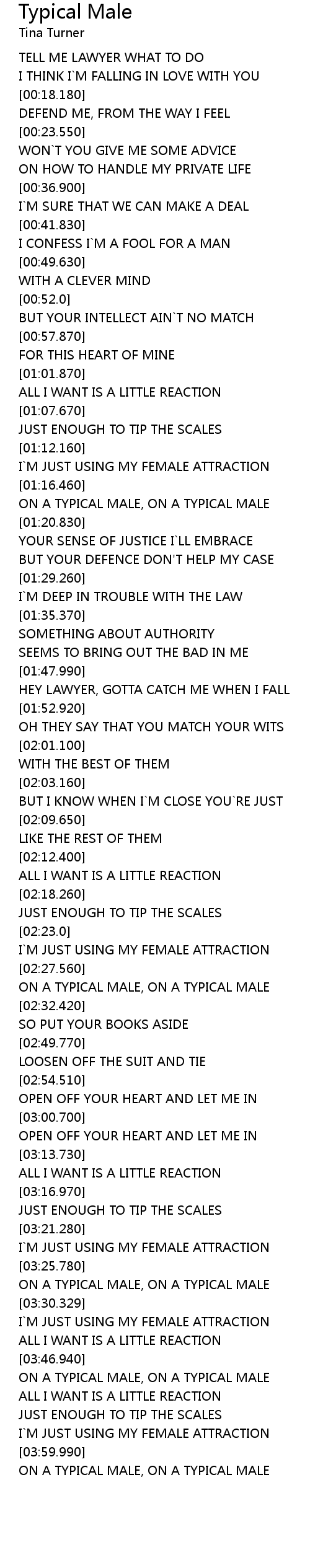 | Song | Typical Male |