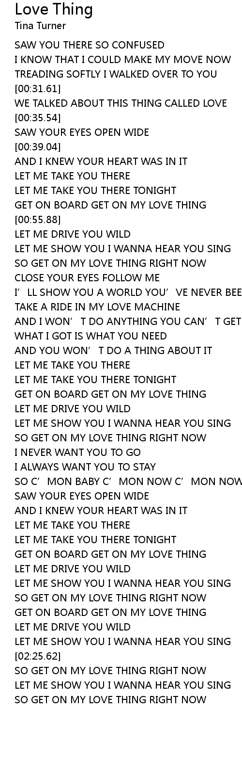 | [01:14.23] | TAKE A RIDE IN MY LOVE MACHINE |