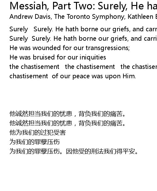 | Song | Messiah, Part Two: Surely, He hath borne our griefs |