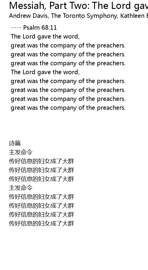 | Song | Messiah, Part Two: The Lord gave the word |
