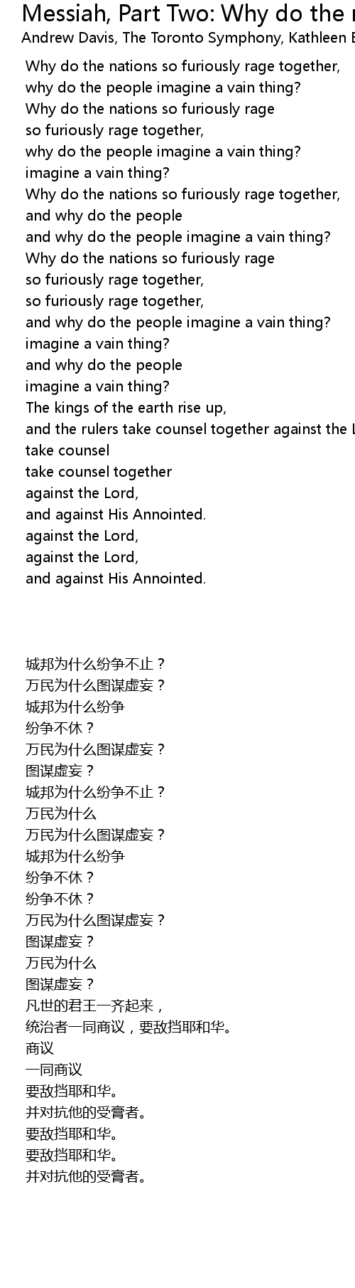Messiah, Part Two: Why do the nations so furiously rage together (bass) Lyrics