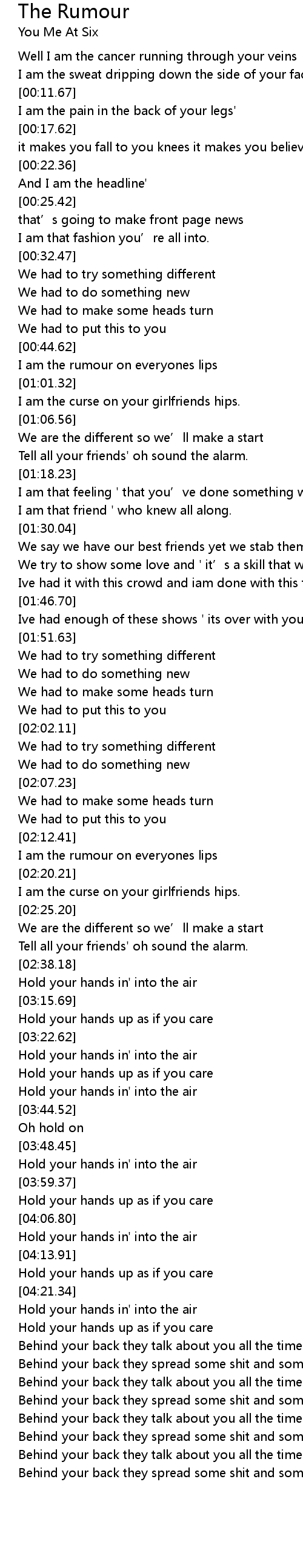 | [05:02.54] | Behind your back they spread some shit and some lies |