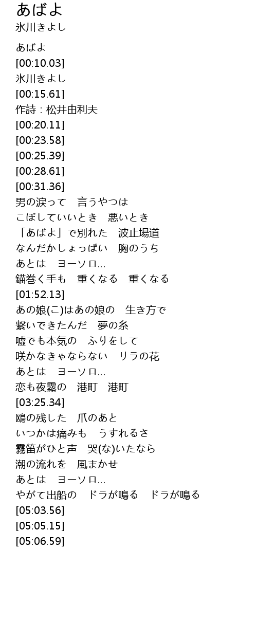 | [04:44.12] | やがて出船の ドラが鳴る ドラが鳴る |