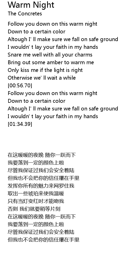 Follow you down on this warm night |
