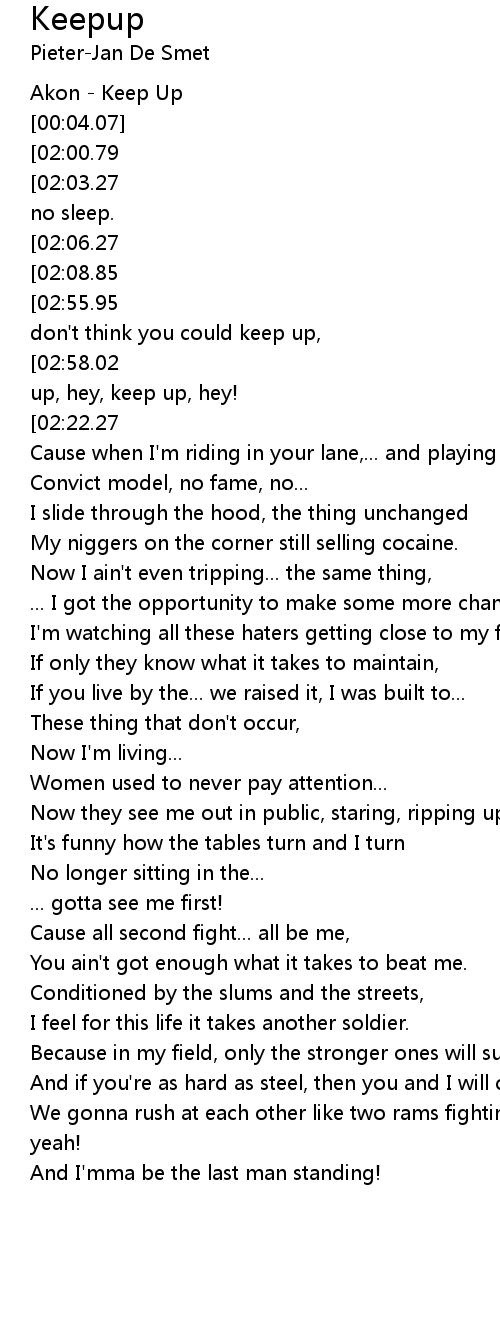 [02:45.02][02:00.79][01:05.72][00:10.33] My niggers, I'm a beast!