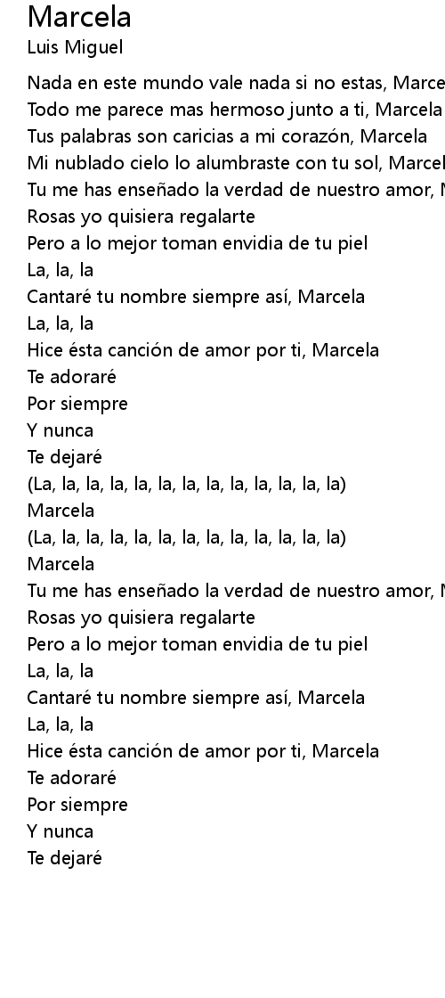 | Nada en este mundo vale nada si no estas, Marcela | |