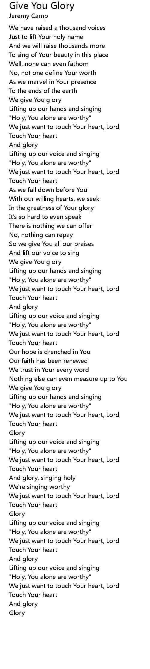 And glory, singing holy |