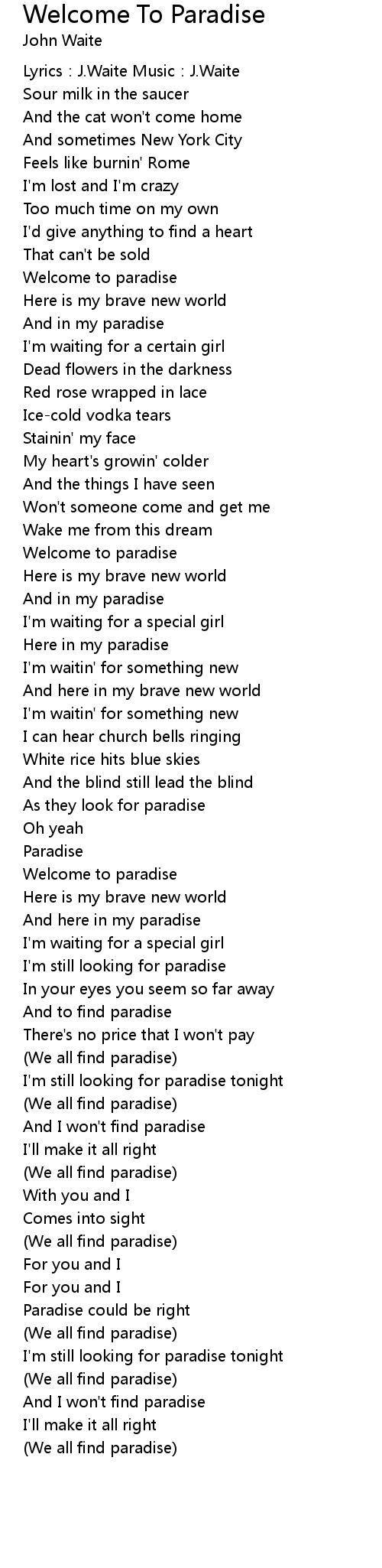 | Lyrics: J. Waite Music: J. Waite | |